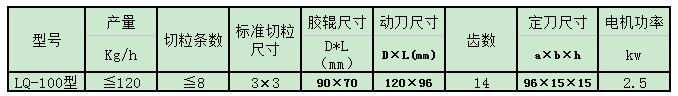 LQ-100型切粒機(jī),產(chǎn)量80-100公斤/小時(shí),建議切粒條數(shù)1~6根。